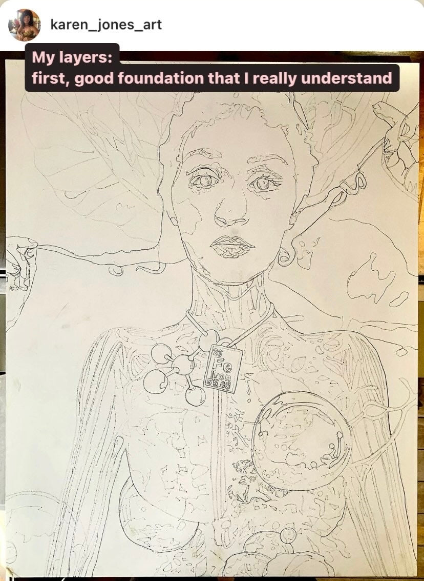 Encouragingly, this artwork demonstrates an adventurous spirit, confidently exploring the fusion of reality and fantasy. To build on this incredible foundation, consider experimenting further with the integration of abstract elements into the more realistic sections, perhaps by allowing some of the ethereal shapes to interact more directly with the figure. This could create even more layers of connection within the piece. Additionally, exploring diverse textures could add another dimension and invite a tactile curiosity from the viewer.